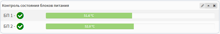 Виджет Контроль состояния блоков питания отображает статус и температуру блоков питания (только для только RTT-M300E/F)