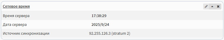 Виджет Сетевое время отображает Дату, Время, Источник синхронизации.