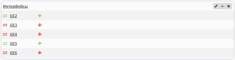 Виджет Интерфейсы показывает информацию по наличию линков в сетевых интерфейсах.