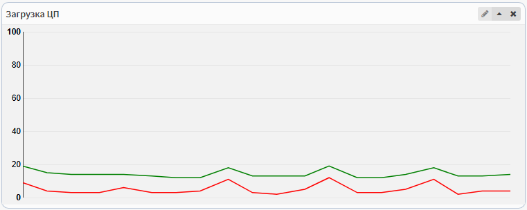 Виджет Загрузка ЦП отображает график загрузки ЦП (данные значения не логируются и сохраняются до перезагрузки страницы)